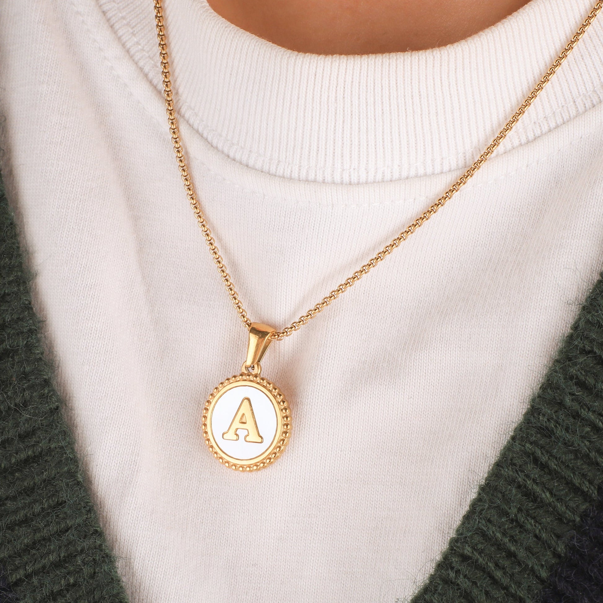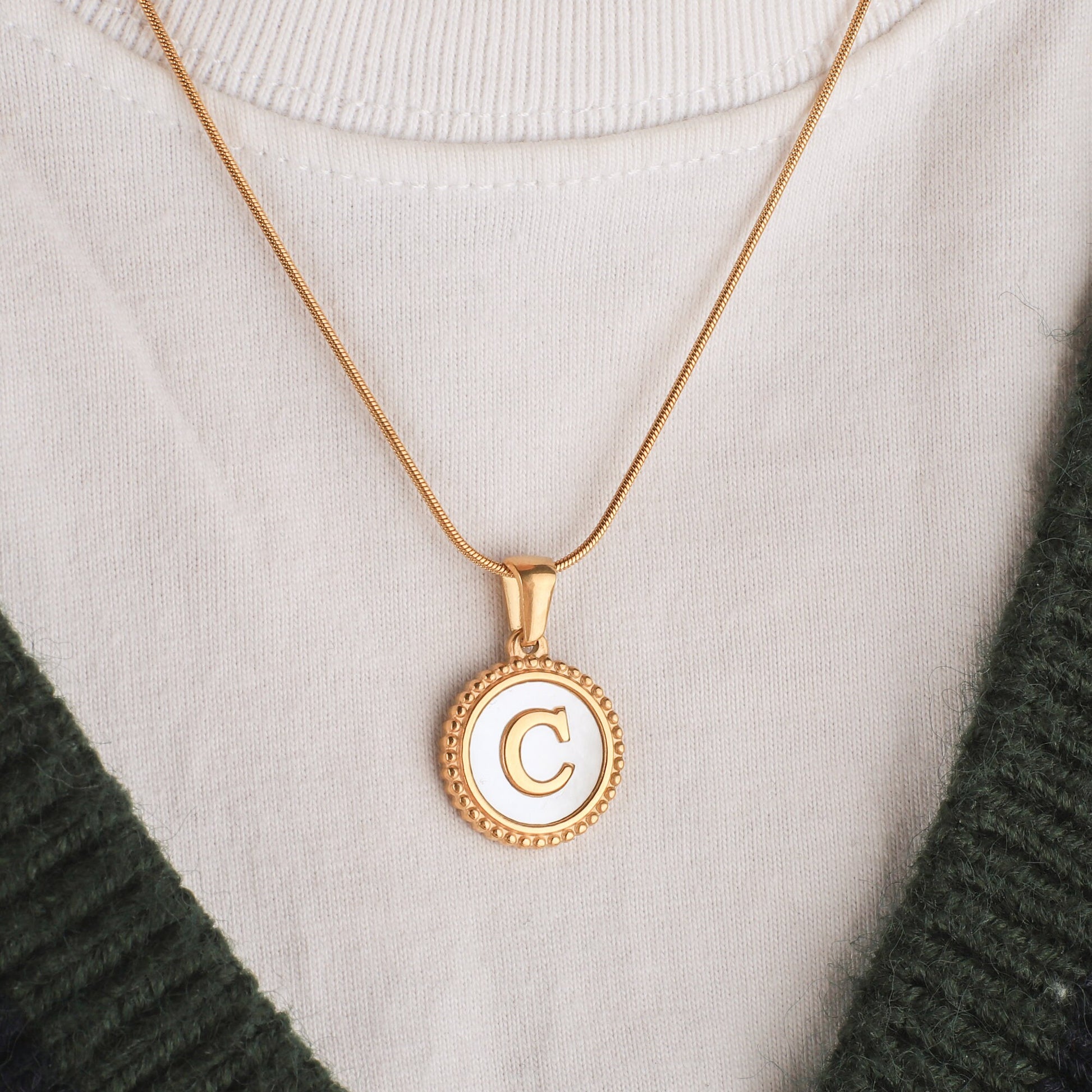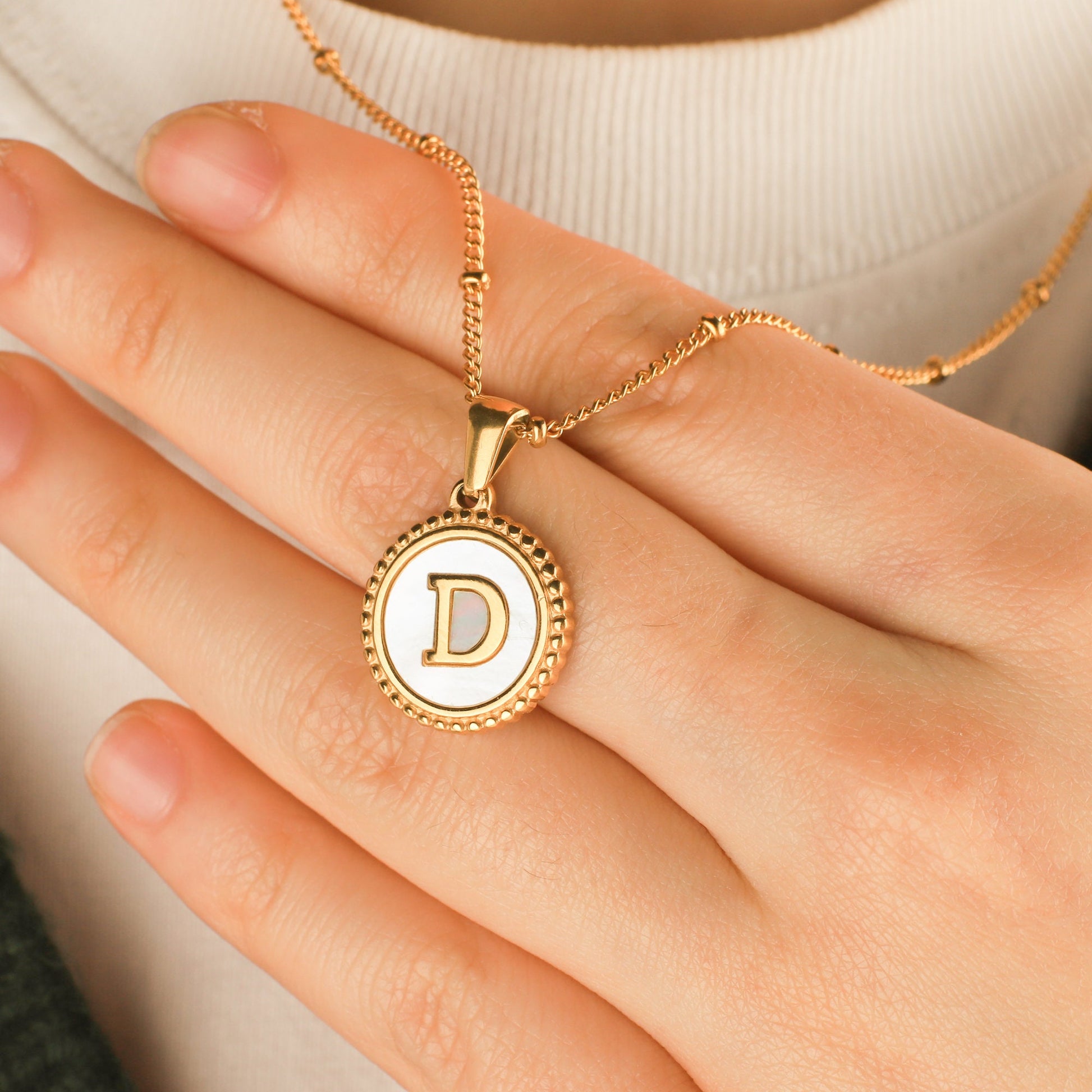 Custom Initial Mother of Pearl Necklace for Women